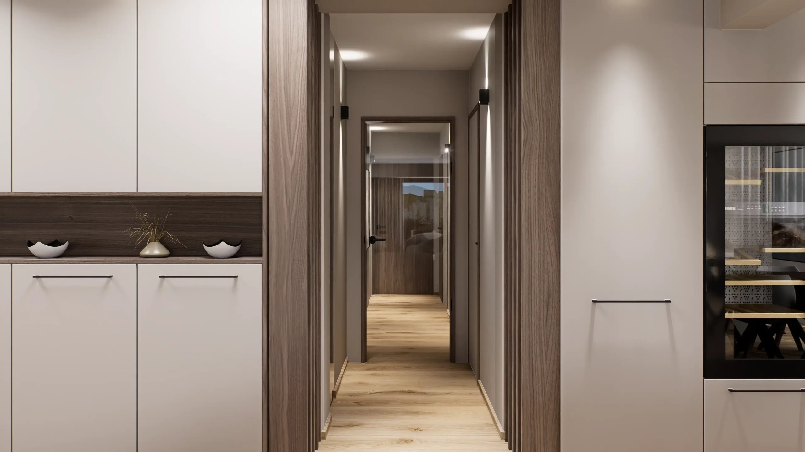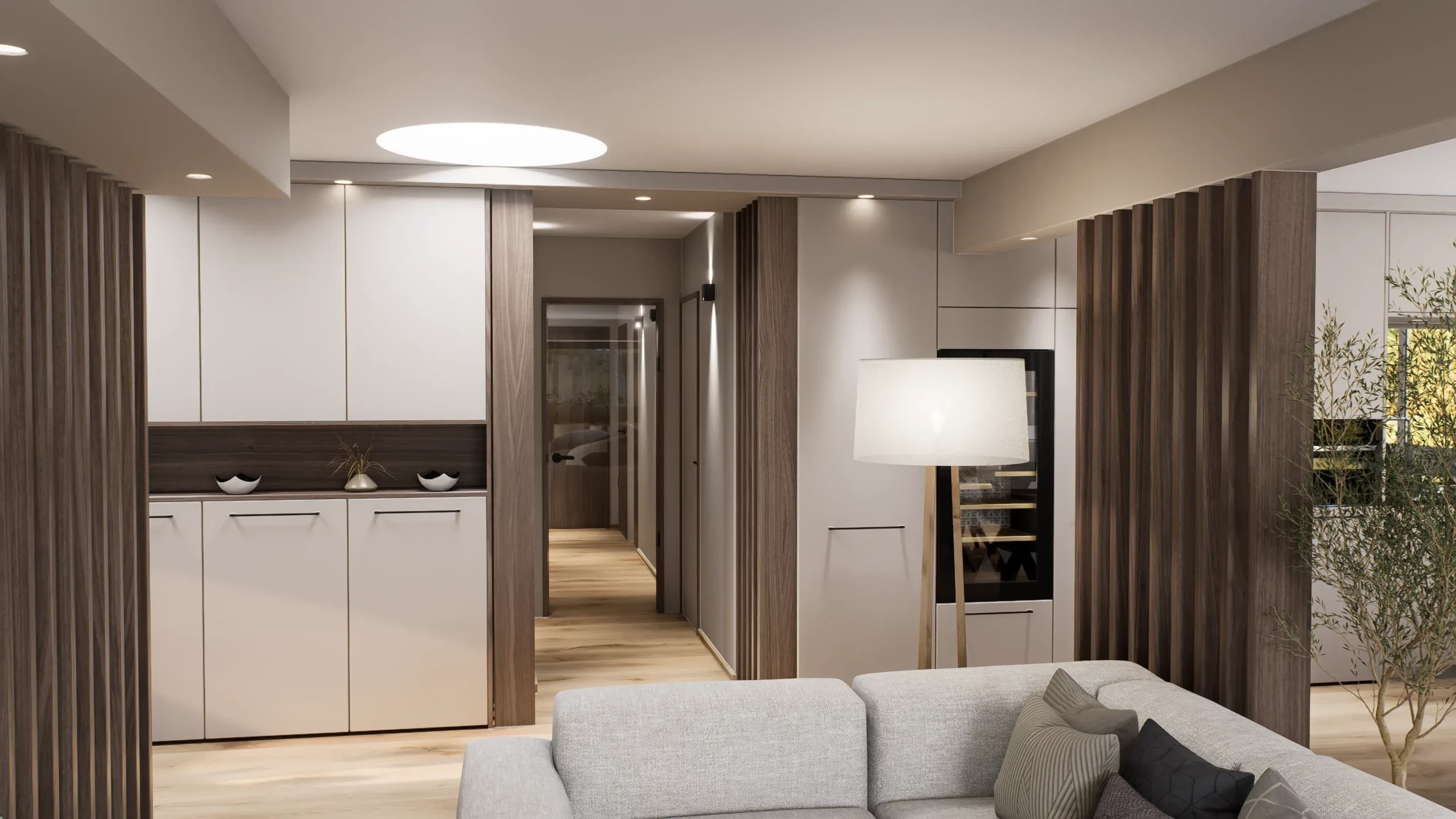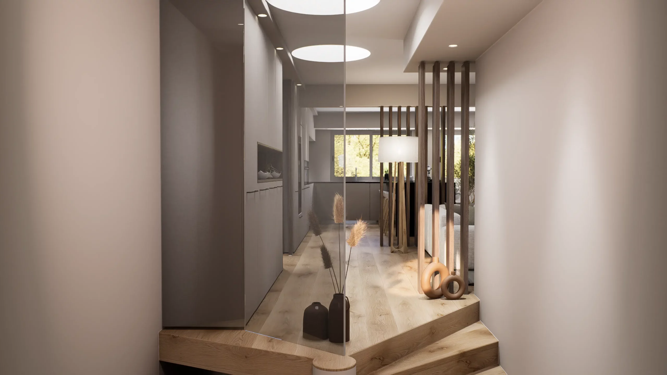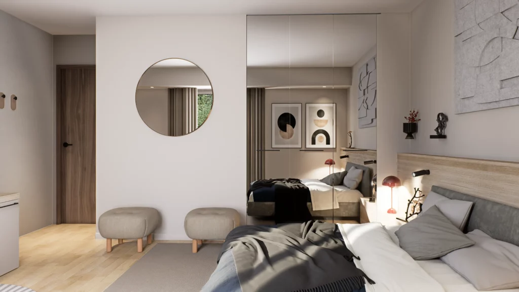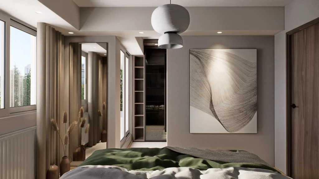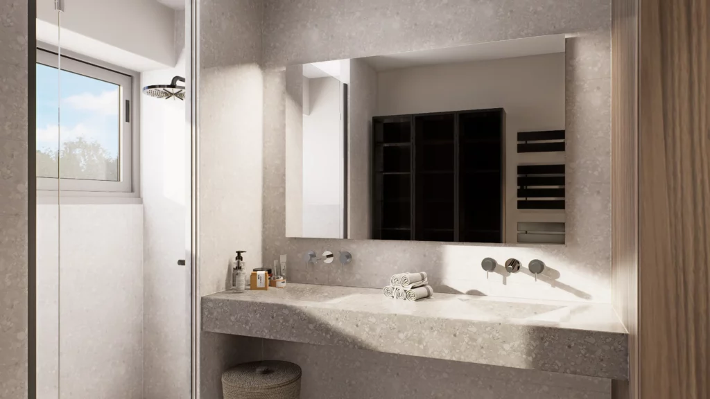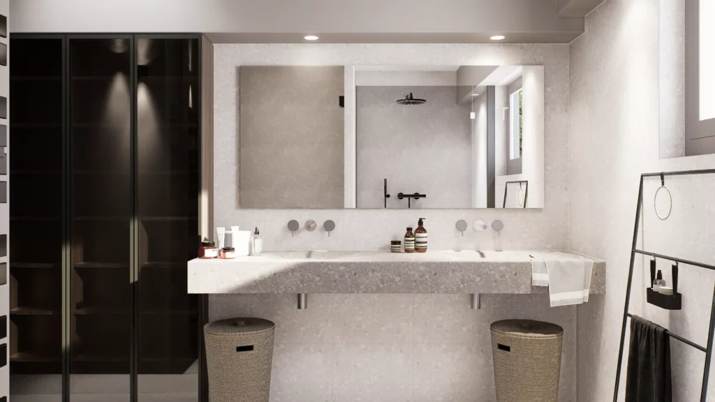 Dans cet attique offrant une vue imprenable sur Besançon et sa citadelle, le projet a consisté à transformer un espace existant en un appartement hyper contemporain, chaleureux et raffiné. De la conception des plans aux rendus 3D, en passant par le suivi du chantier, chaque étape a été pensée et accompagnée pour garantir une rénovation harmonieuse et aboutie.