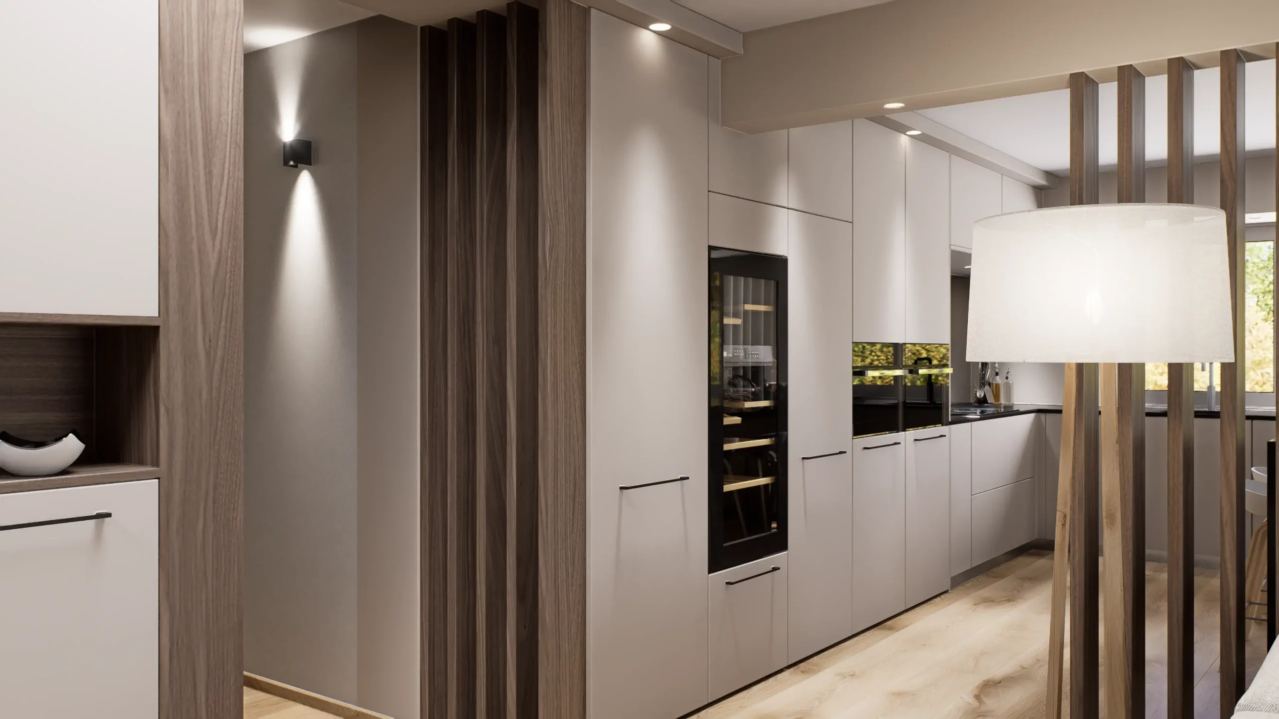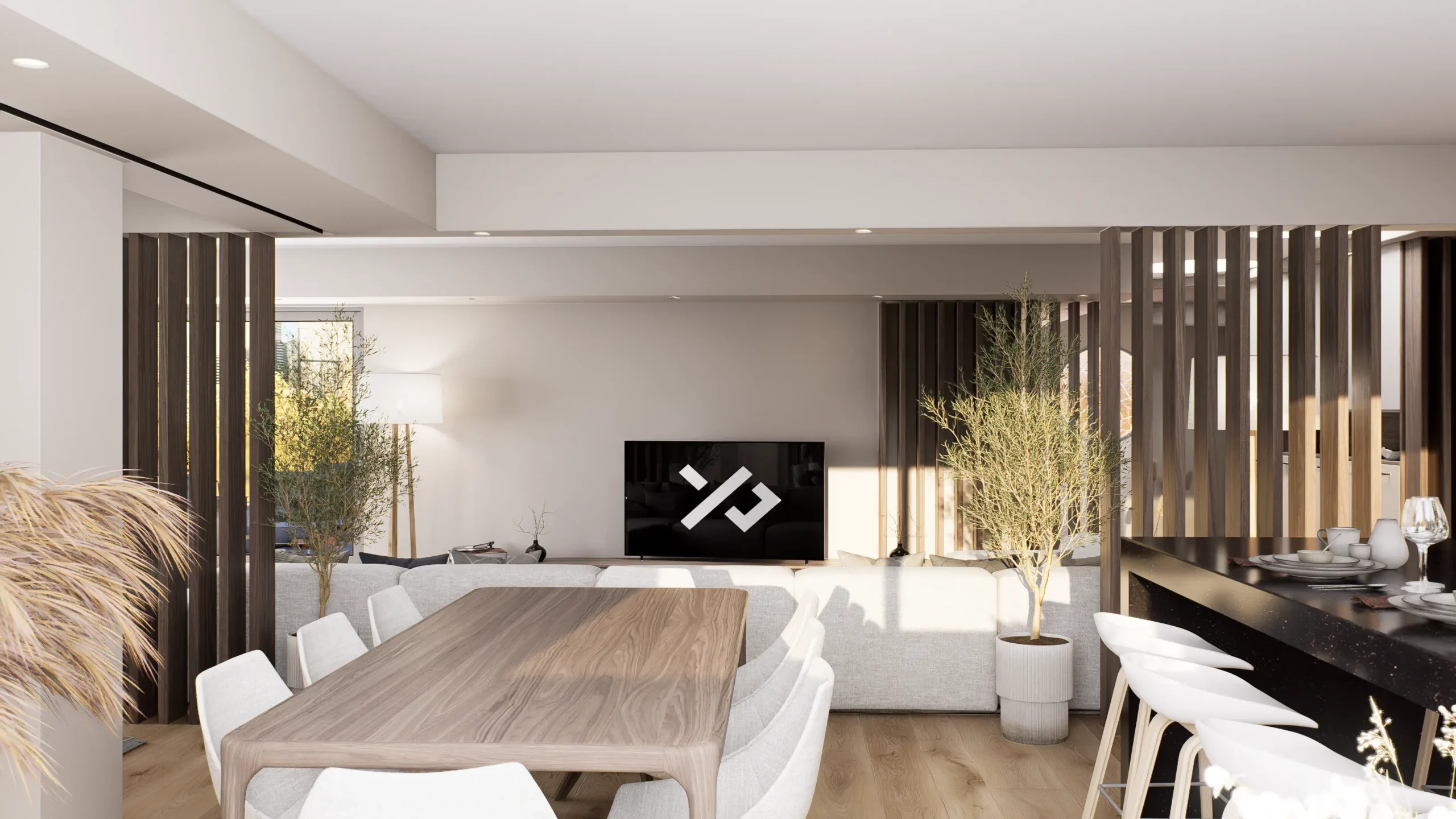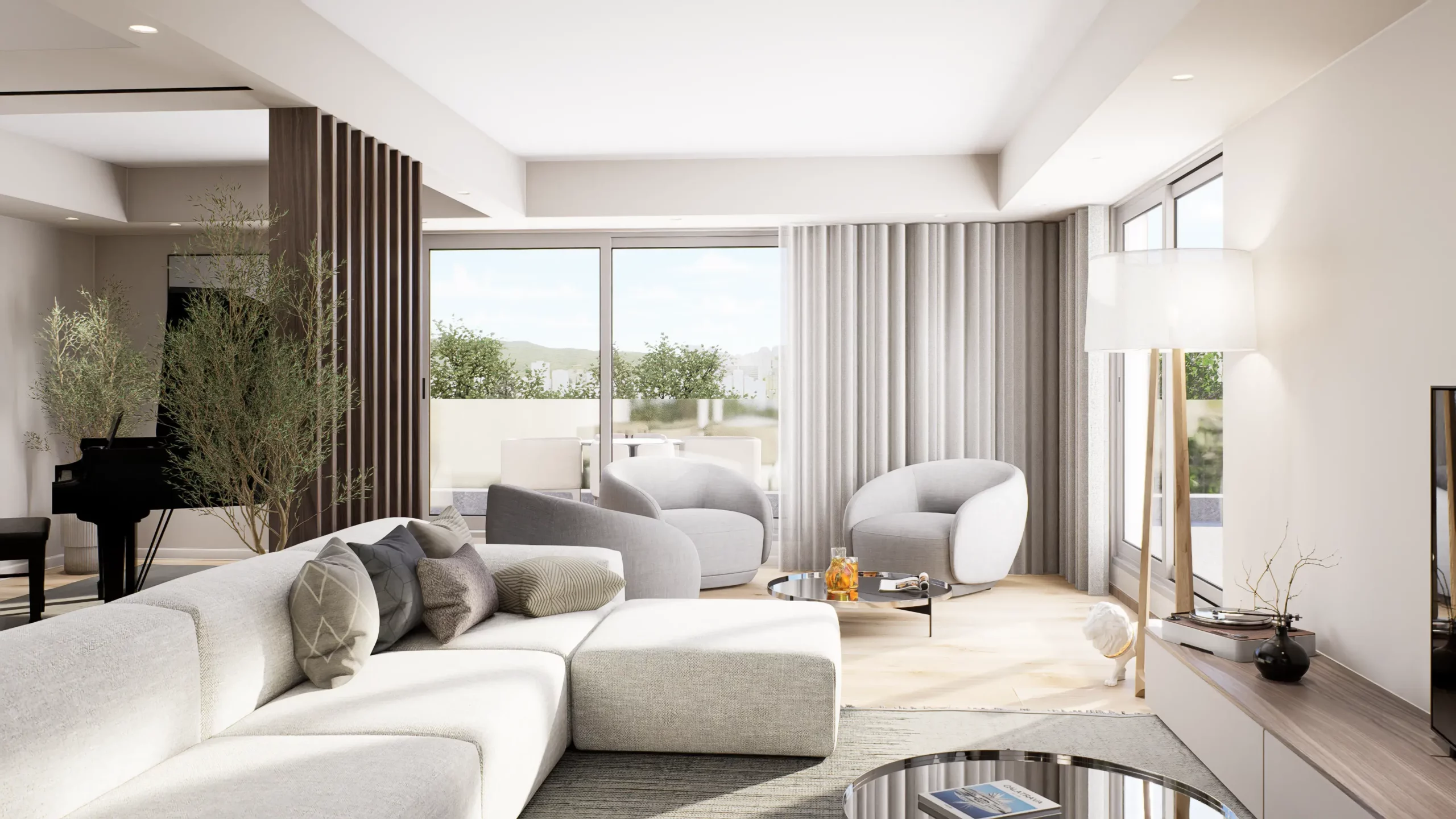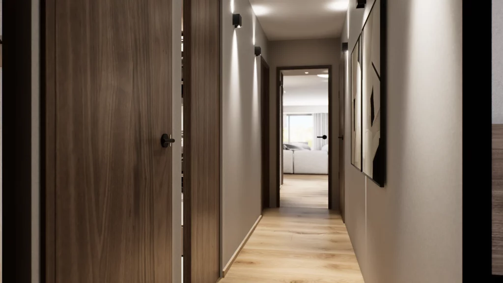 La pièce de vie, cœur du projet, s’organise autour de l’intégration d’un piano, élément central de la décoration et de la convivialité de l’espace. L’ambiance contemporaine se marie avec des touches boisées, apportant chaleur et équilibre à l’ensemble. Cuisine, salle à manger et salon dialoguent dans une continuité fluide, pensée pour la fonctionnalité autant que pour l’esthétique.